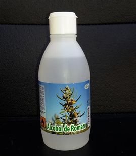 Alcohol de romero: producto de uso externo utilizado para realizar lociones con las beneficiosas propiedades de la planta de romero. Indicado como relajante, contra la celulitis, golpes y contusiones (que no sangren), contra la caída del cabello, dermatitis seborreica, gota y neuralgias. (Envase de 250 cc)